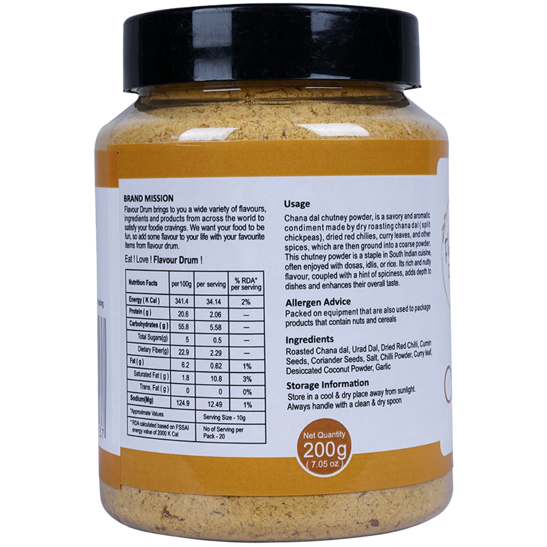 About this item Made with roasted chana dal for a rich, nutty flavor. Perfect accompaniment for idli, dosa, rice, and snacks. Ready-to-eat and easy to mix with ghee, oil, or curd. Ingredients Roasted Chana Dal, Red Chilli, Garlic, Salt, Cumin, Curry Leaves, Oil Allergen Information Processed in a facility that...